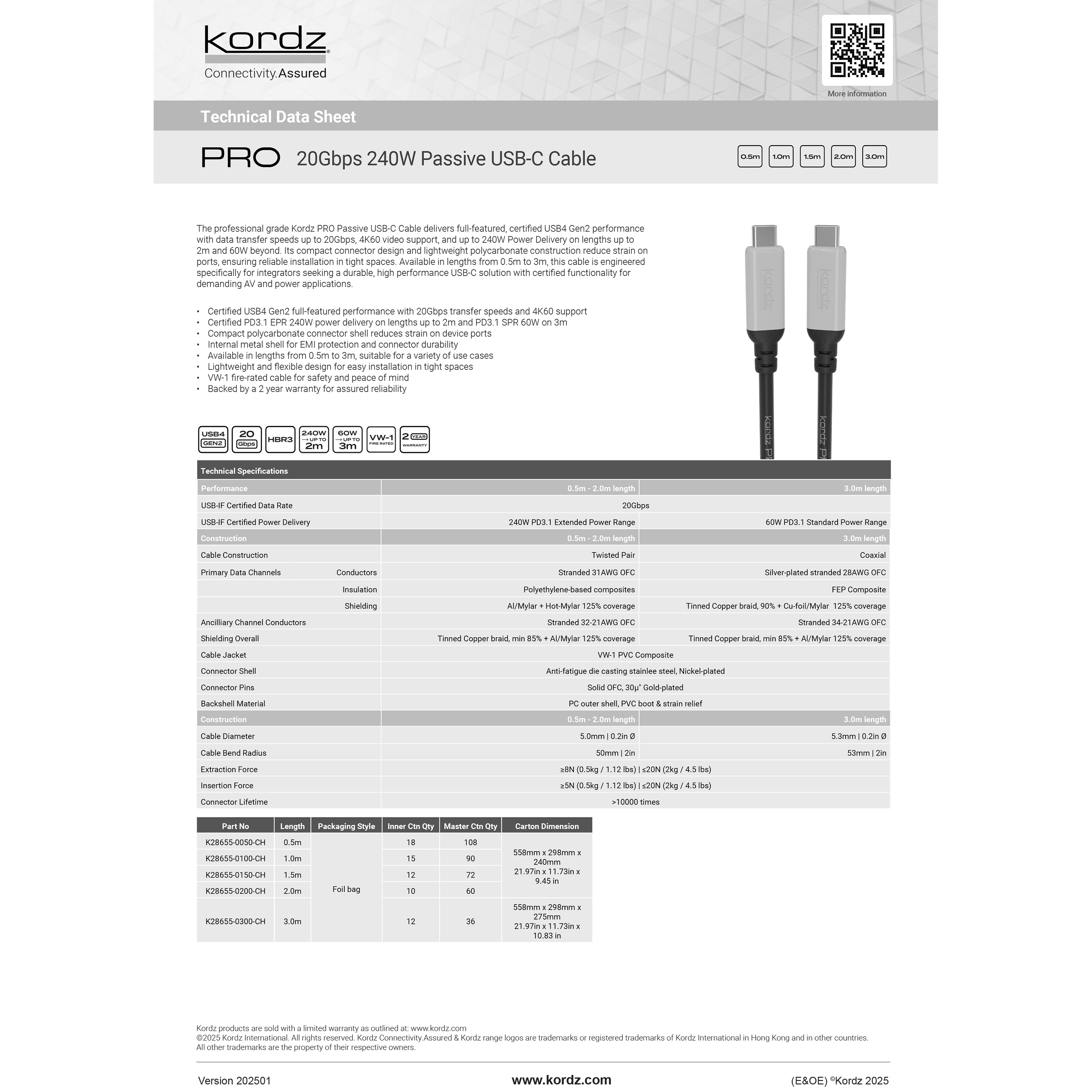 Kordz PRO 20Gbps Passive USB-C Cable